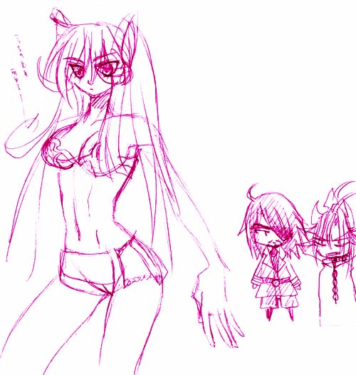昨日寝る前に描いたらしい『まじかる無双天使 突き刺せ!! 呂布子ちゃん』のキャラ。